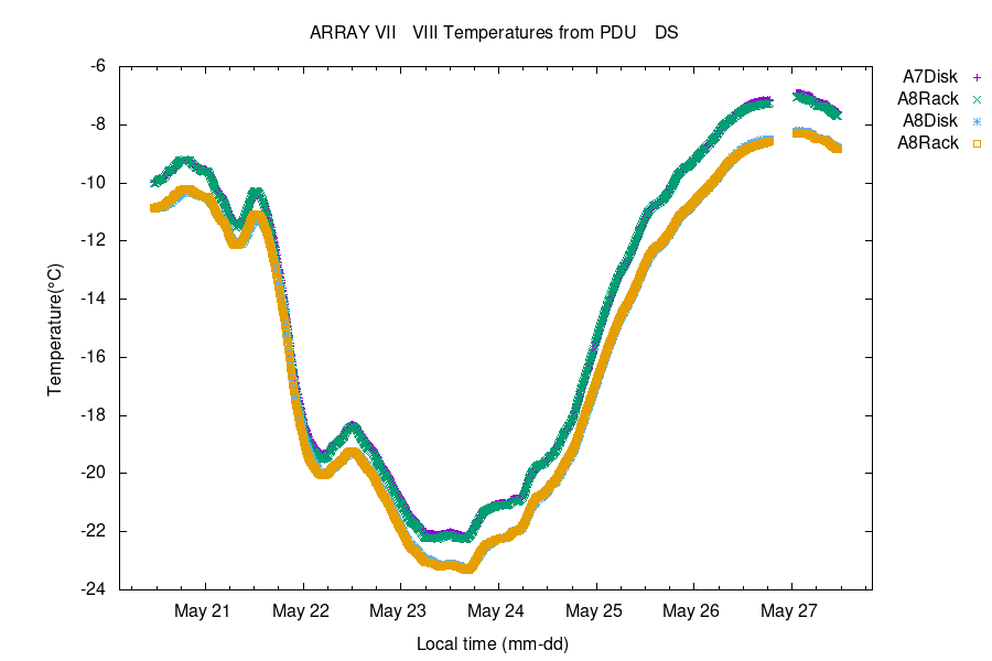 This plots page shows many parameters related to AST3 system, including CCD, COD (Control, Operation and Data), and telescope systems.  There is a delay in time for the transfer of data from Dome A via Iridium satellites.