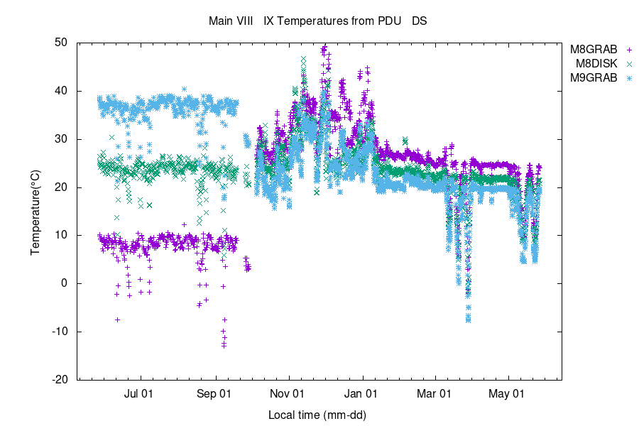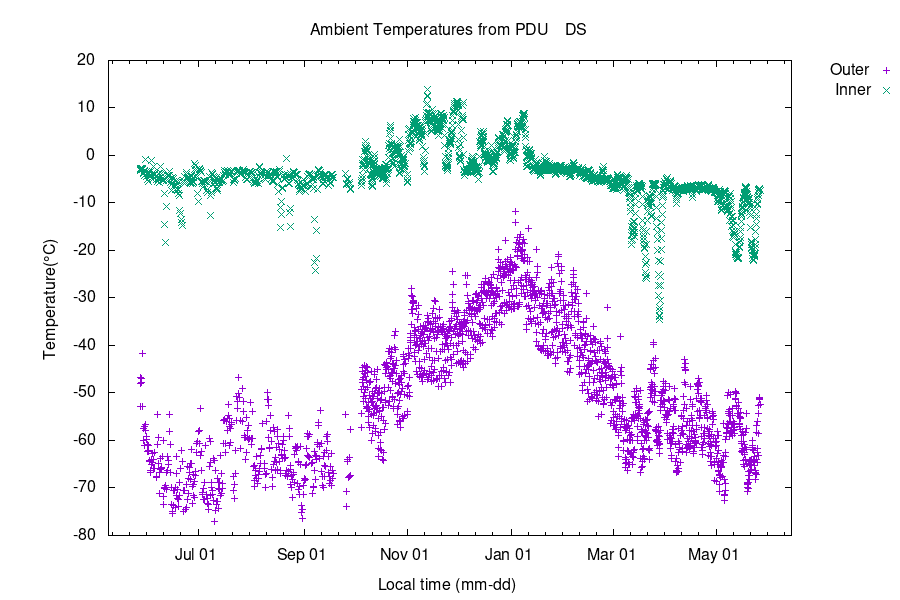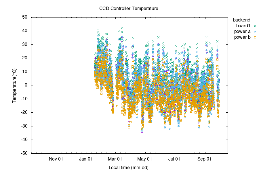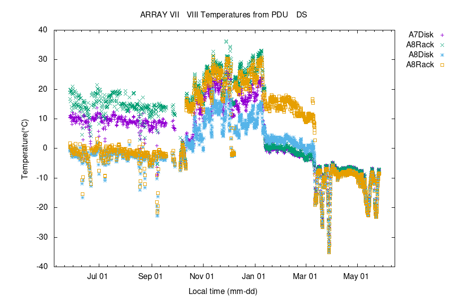 This plots page shows many parameters related to AST3 system, including CCD, COD (Control, Operation and Data), and telescope systems.  There is a delay in time for the transfer of data from Dome A via Iridium satellites.