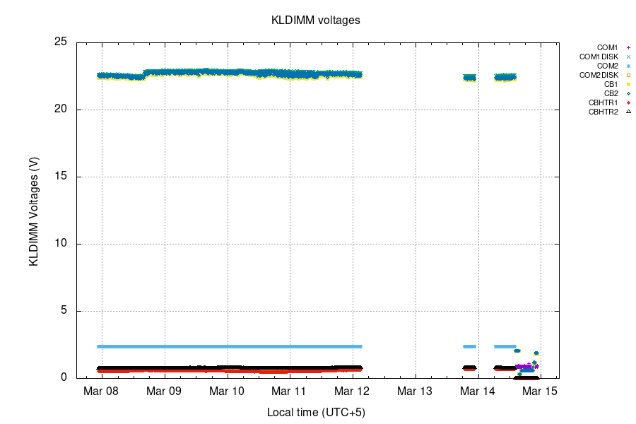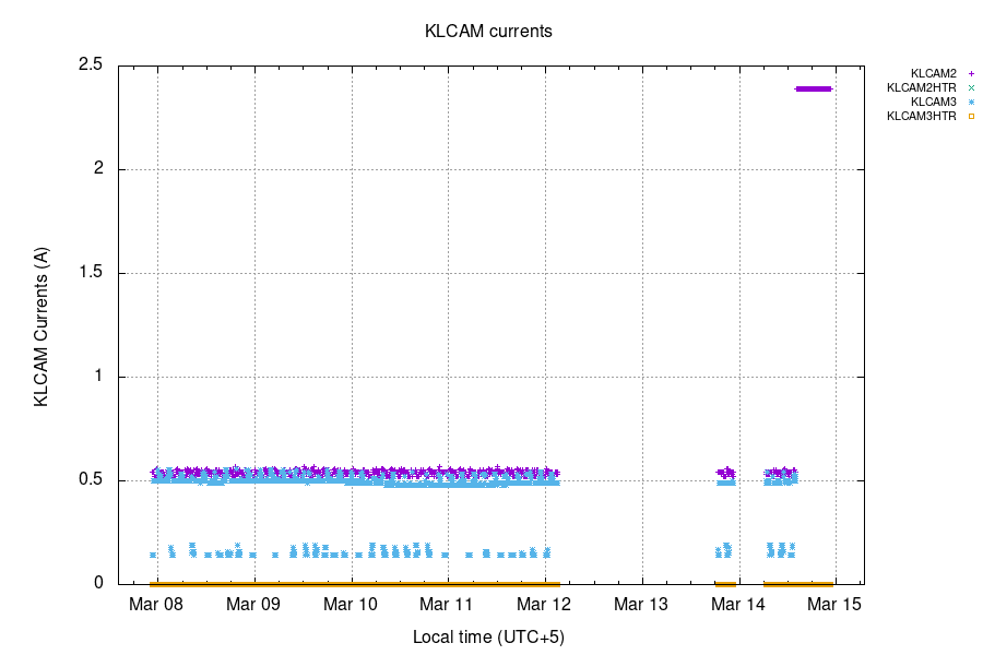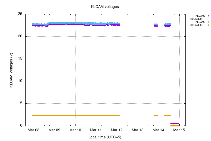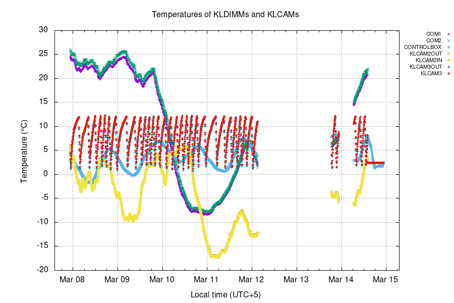 | Local Time | Controlbox Temperature (°C) | KLCAM2 Temperature (°C) | KLCAM3 Temperature (°C) | KLCAM2 Power (W) | KLCAM23 Power (W) | KLDIMM Power (W) | KLAWS Power (W) | Beijing Time | UTC |